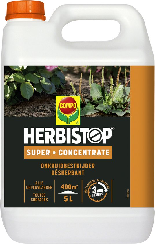 Herbistop Super Alle Oppervlakken - geconcentreerde onkruid- en mosbestrijder - snelle werking - bidon 5 L (400 m²)