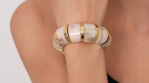 Dames armband statement-dames armband goud-dames bangel-marmerlook-kerst kado -kado voor haar-wit goud armband