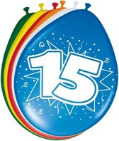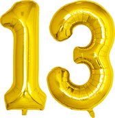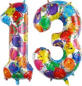 16x stuks Gekleurde ballonnen versiering 13 jaar. Deze gekleurde ballonnen hebben een opdruk met het cijfer 13. Formaat: 30 cm.