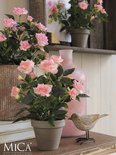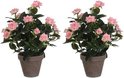 Mica Decorations Kunstplant - 2x - rozen - roze - in grijze pot - 33cm - kunst roos