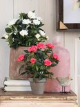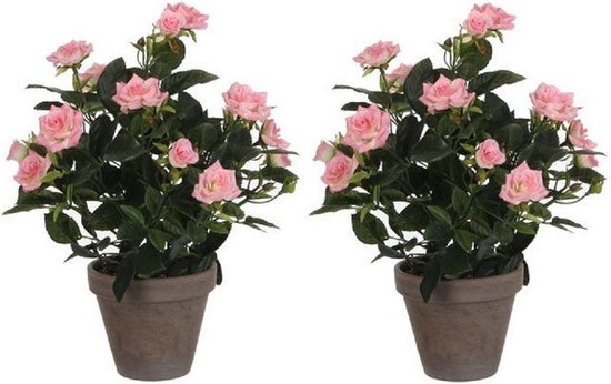 2x roze rozen kunstplant 33 cm in pot stan grey. Zeer realistisch uitziende, onderhoudsvrije/onderhoudsarme rozen kunstplant met roze bloemen in een grijze plantenpot. Materiaal: kunststof/plastic. Formaat plant: 33 cm hoog. Inclusief pot: ja. Diameter pot: 11,5 cm. Nepplanten/kunstplanten kamerplanten woondecoraties voor in huis.