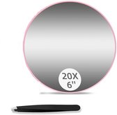 2 Stuks Make-up Spiegel - 15x Vergroot - Spiegel - Vergroot Spiegel - Vergrootspiegel met Zuignap - Spiegeltje - Vergrotende spiegel - Reisspiegel - Zuignappen - Rond - voor scheren, wenkbrauwpincet, mee-eters en vlekken verwijderen - Roze - 9*9*1cm