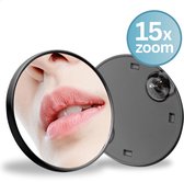 RENALUX - Vergrootspiegel met Zuignap - Make Up Spiegel 15x Vergroting - Vergroot Spiegel Badkamer - Scheerspiegel - Reisspiegel Vergroting - Zwart