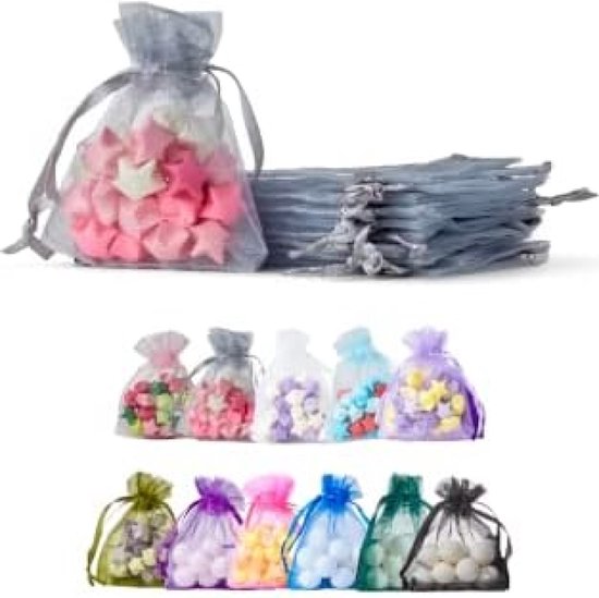 Premium transparante organza: elegante, zachte en semi-transparante organzazakjes met een trekkoord dat perfect past bij de kleur van elke tas.