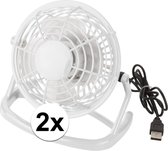 Mini bureau ventilator - 4x - USB - wit - 15 cm - verkoeling - tafelventilator