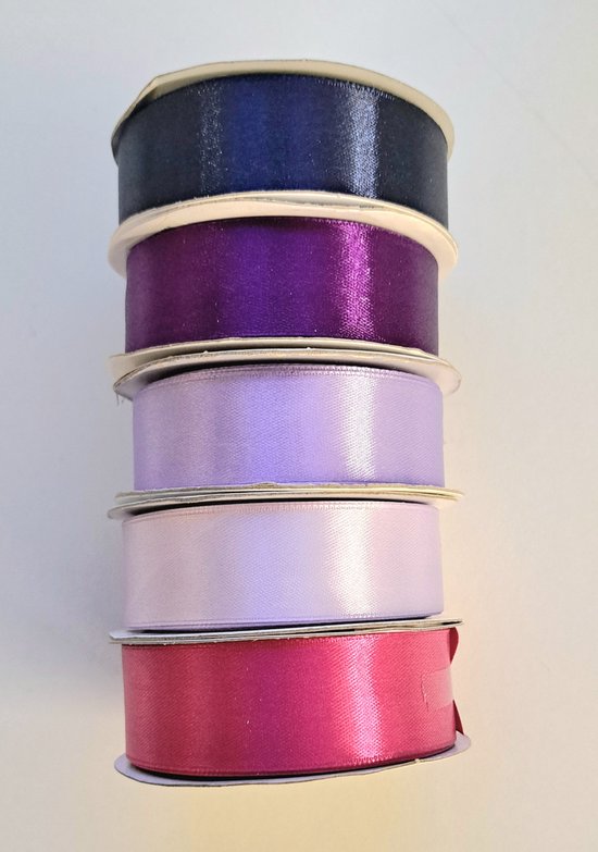 rollen satijnlint 25mm breed in de kleuren donkerblauw, paars, lila, violet, fuchia
