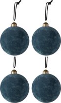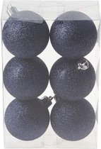 6x Donkerblauwe kunststof kerstballen 8 cm - Glitter - Onbreekbare plastic kerstballen - Kerstboomversiering donkerblauw