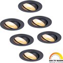 6x HOFTRONIC Malta - Dim to warm inbouwspot - LED - Rond zaagmaat 60-67mm - Zwart - Dimbaar - Kantelbaar - 5 Watt - 480 lumen - 230V - 1800-2700K - Plafondspots - Inbouwspot voor badkamer en buiten - 5 jaar garantie
