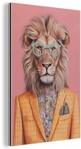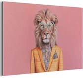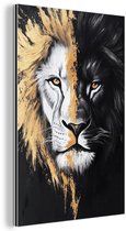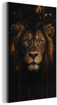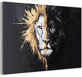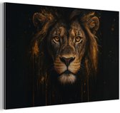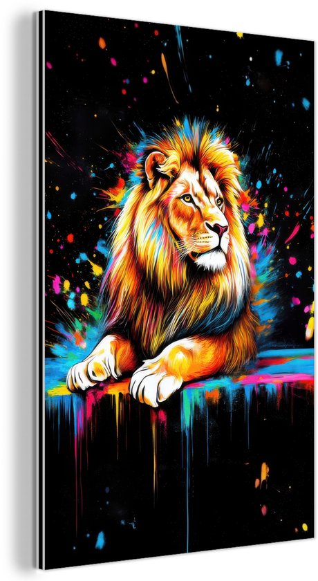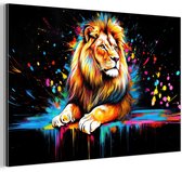 Aluminium schilderij 100x150 cm - Wanddecoratie metaal - Leeuw - Kleurrijk - Spetters - Metalen muurdecoratie woonkamer - Decoratie industrieel - Foto op dibond - Industriële accessoires slaapkamer