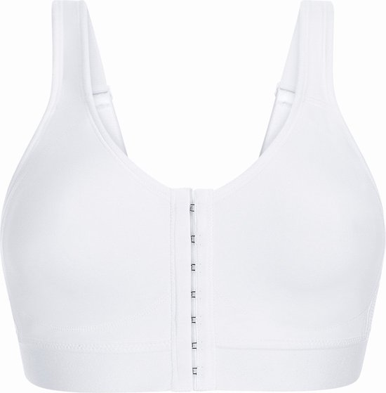 Postoperatieve beha met haak-en-oogsluiting vooraan, in een modern en sportief ontwerp.