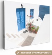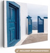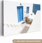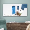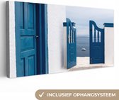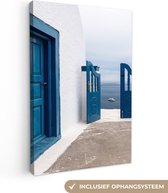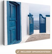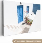 Canvas Schilderij Architectuur - Blauw - Wit - Deur - 80x40 cm - Wanddecoratie