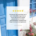 - Gespannen op een houten frame van 2 cm dik
