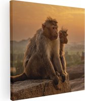 Artaza Canvas Schilderij Drie Kleine Apen Naast Elkaar - 50x50 - Foto Op Canvas - Canvas Print