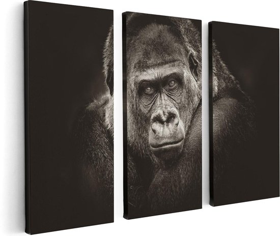 Artaza Canvas Schilderij Drieluik Gorilla - Zwart Wit - 120x80 - Foto Op Canvas - Canvas Print