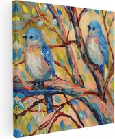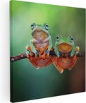 Artaza Canvas Schilderij Twee Boomkikkers op een Tak - 70x70 - Foto Op Canvas - Canvas Print