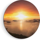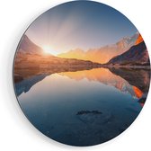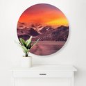 Artaza Dibond Muurcirkel Meer Bij De Bergen Bij Zonsondergang - Ø 40 cm - Klein - Wandcirkel - Rond Schilderij - Voor Binnen en Buiten