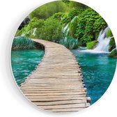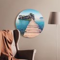 Artaza Forex Muurcirkel Pad Op Het Water Naar Een Grieks Eiland - 40x40 cm - Klein - Wandcirkel - Rond Schilderij - Wanddecoratie Cirkel