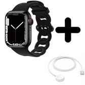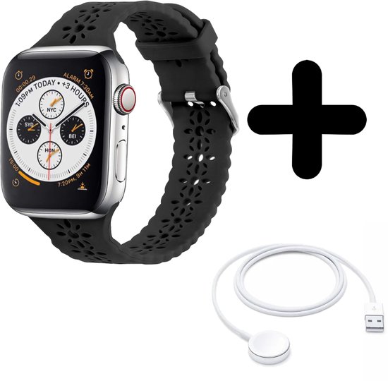 Bandje geschikt voor Geschikt voor Apple Watch bandje siliconen bandje met patroon (zwart) - Voor modellen: 38/40/41mm Incl. Oplader geschikt voor Geschikt voor Apple Watch 1/2/3/4/5/6/7/8/9/Ultra - Oplaadkabel - Kabel