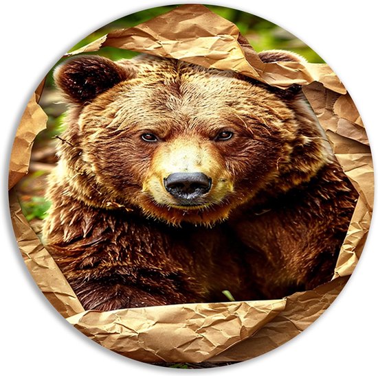 Beer rond schilderij - Dier wandbord - Muurcirkels Papier - Wanddecoratie industrieel - Schilderij - Woondecoratie muurcirkel aluminium 80x80 cm