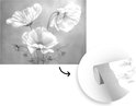 Stilleven van bloemen vervaardigd met waterverf. De bloemen zijn geschilderd in zwart met witte kleuren.