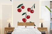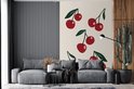 Fotobehang - Kersen - Blaadjes - Rood - Woonkamer - Slaapkamer - Kinderkamer