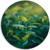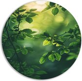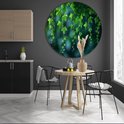 Bladeren rond schilderij - Natuur muurdecoratie rond - Schilderij rond licht - Muurdecoratie landelijk - Schilderij forex - Woonaccessoires muurcirkel forex 100x100 cm