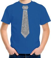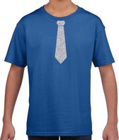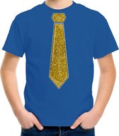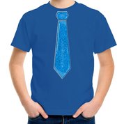 Verkleedkleding t-shirt - blauw - met kleine Stropdas - goud glitters - voor kinderen - carnaval 110/116