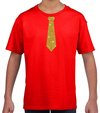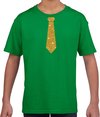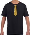 Geschreven bij: Verkleedkleding t-shirt - zwart - met kleine Stropdas - goud glitters - voor kinderen - carnaval 158/164