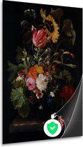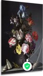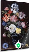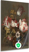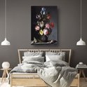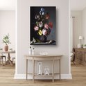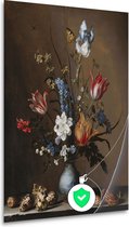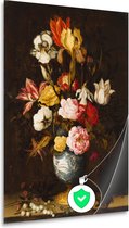 Bloemen in een vaas met schelpen en insecten - Balthasar van der Ast wanddecoratie - Bloemen posters - Poster Natuur - Wanddecoratie industrieel - Slaapkamer posters - Kunst poster 80x120 cm