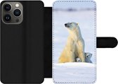 Telefoonhoesje Geschikt voor iPhone 13 Pro Max telefoonhoesje - Pinguïns - Sneeuw - Dieren - Met vakjes - Wallet case met magneetsluiting