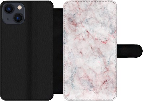 Telefoonhoesje Geschikt voor iPhone 13 telefoonhoesje - Marmer printen - Rood - Natuursteen - Met vakjes - Wallet case met magneetsluiting