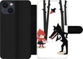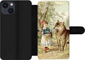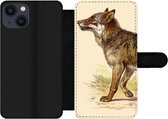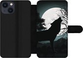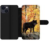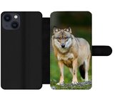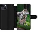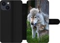 Telefoonhoesje Geschikt voor iPhone 13 telefoonhoesje - Wolf - Mos - Bos - Pup - Met vakjes - Wallet case met magneetsluiting