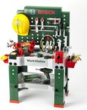 - Een grote speelgoed werkbank met apparatuur, een bankschroef en 150 accessoires om te doe het zelf.