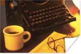 Bovenaanzicht van herfstachtige koffie geserveerd met kaneel poster 180x120 cm - Foto print op Poster (wanddecoratie woonkamer / slaapkamer) XXL / Groot formaat!