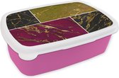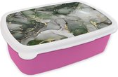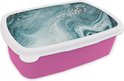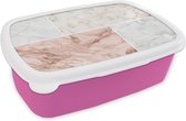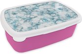 Broodtrommel Roze - Lunchbox - Brooddoos - Marmer look - Blauw - Luxe - 18x12x6 cm - Kinderen - Meisje
