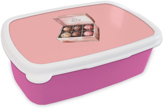 Broodtrommel Roze - Lunchbox Doosje - Bonbons - Liefdevolle - Tekst - Brooddoos 18x12x6 cm - Brood lunch box - Broodtrommels voor kinderen en volwassenen