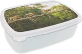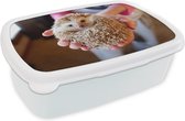 Broodtrommel Wit - Lunchbox - Brooddoos - Lancering van een spaceshuttle in het heelal - 18x12x6 cm - Volwassenen