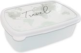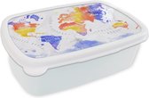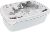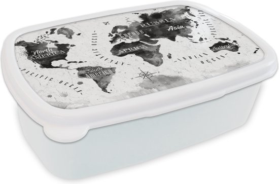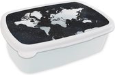 Broodtrommel Wit - Lunchbox - Brooddoos - Wereldkaart - Waterverf - Zwart - Wit - 18x12x6 cm - Volwassenen