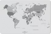 Bureau onderlegger 60x40 cm - Muismat Licht grijze wereldkaart - zwart wit - Bureaulegger xl - Desk mat beschermer - Computer muismatten
