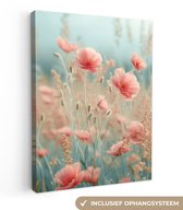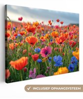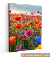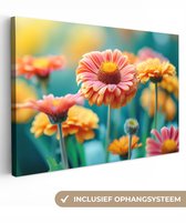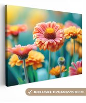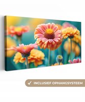 Canvas Schilderij 60x80 cm - Bloemen - Kleurrijk - Natuur - Gerbera - Wanddecoratie woonkamer - Muurdecoratie keuken - Slaapkamer decoratie - Schilderijen - Woonaccessoires