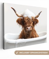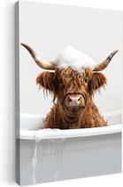 Canvas schilderijen - Schotse hooglander - Bad - Schuim - Koe - Woonkamer - Slaapkamer