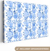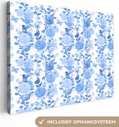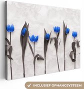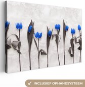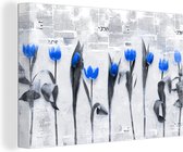 Canvas schilderij 160x120 cm - Wanddecoratie Bloemen - Tulpen - Blauw - Muurdecoratie woonkamer - Slaapkamer decoratie - Kamer accessoires - Schilderijen