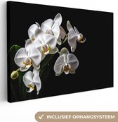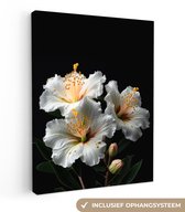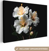 Canvas schilderij 150x100 cm - Wanddecoratie Bloemen - Wit - Hibiscus - Natuur - Zwart - Muurdecoratie woonkamer - Slaapkamer decoratie - Kamer accessoires - Schilderijen op canvas