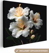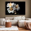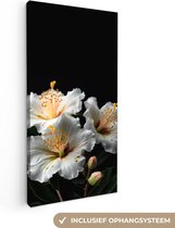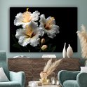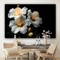 Canvas schilderijen - Bloemen - Wit - Hibiscus - Natuur - Zwart - Woonkamer - Slaapkamer