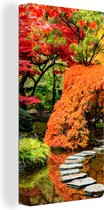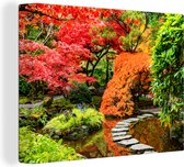 Waan jezelf in een botanische tuin met deze foto op canvas! Op het canvas schilderij staat een stenen pad omringd door gekleurde bomen.
