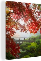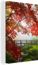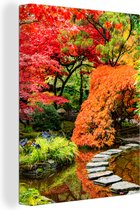 Canvas schilderijen - Japanse esdoorn - Water - Japan - Rood - Groen - Woonkamer - Slaapkamer