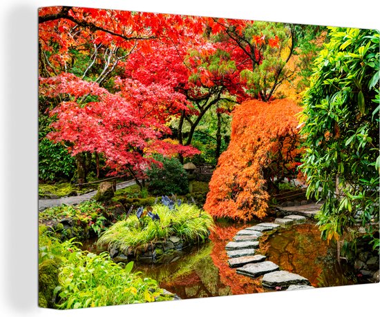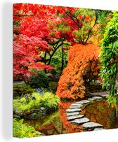 Canvas schilderij - Bomen - Stenen - Pad - Natuur - Japans - Schilderijen op canvas - 30x20 cm - Canvasdoek - Muurdecoratie