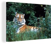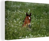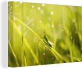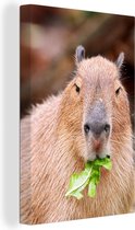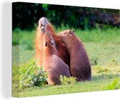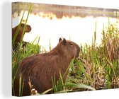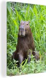 Canvas Schilderij Een Capibara zit in het hoge groene gras - 20x30 cm - Wanddecoratie