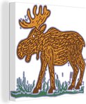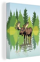 Canvas schilderijen - Een illustratie van een eland in het water met en witte achtergrond - Woonkamer - Slaapkamer