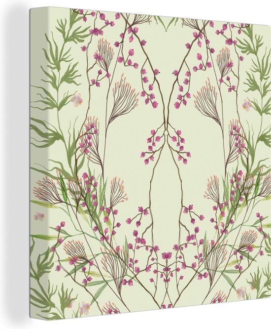 Canvas Schilderij Groen - Pastel - Bladeren - Bloemen - 90x90 cm - Wanddecoratie